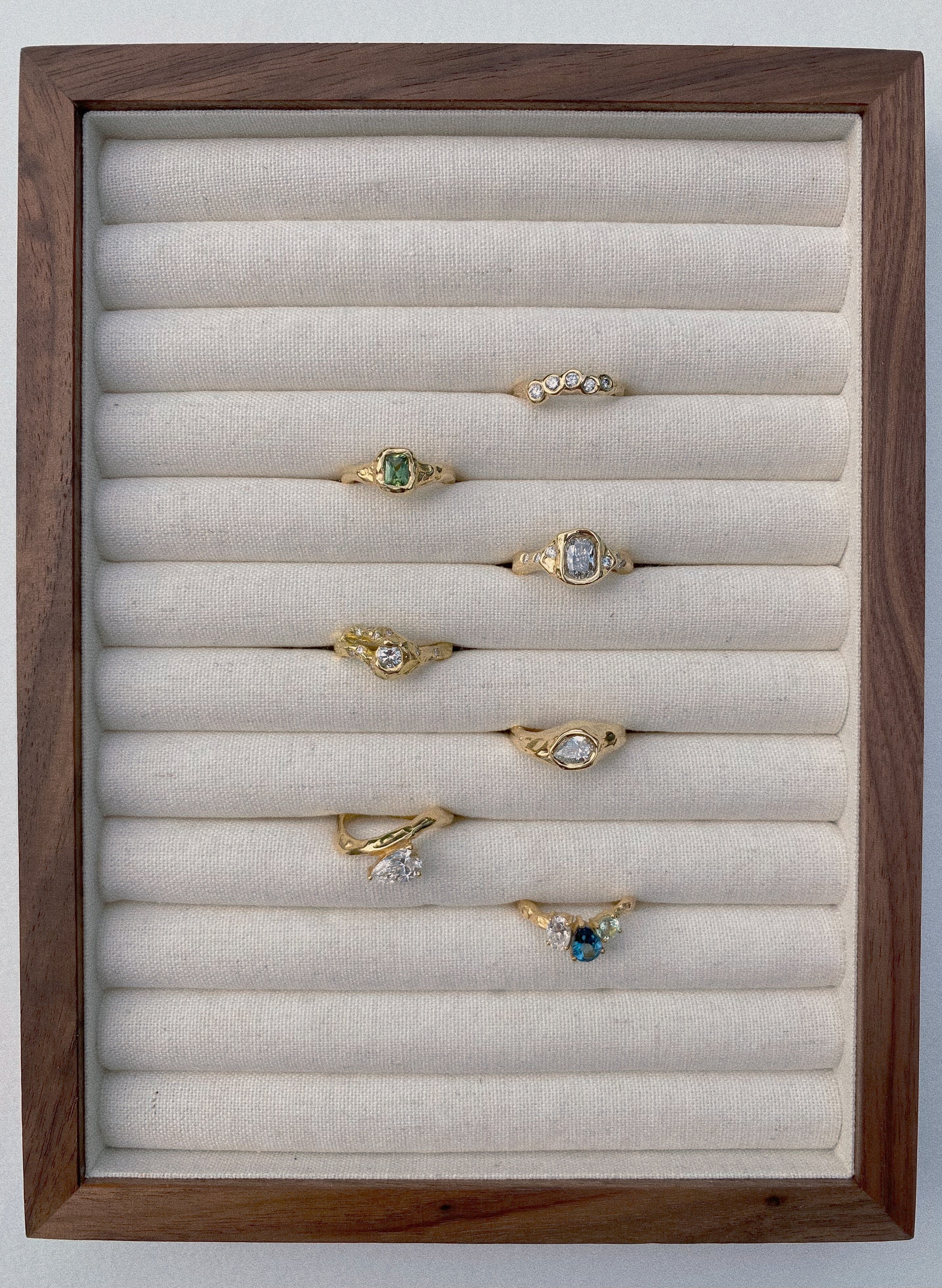 I only use recycled precious metals and ethically sourced gemstones. Working with local suppliers and a no waste policy make my business truly sustainable.