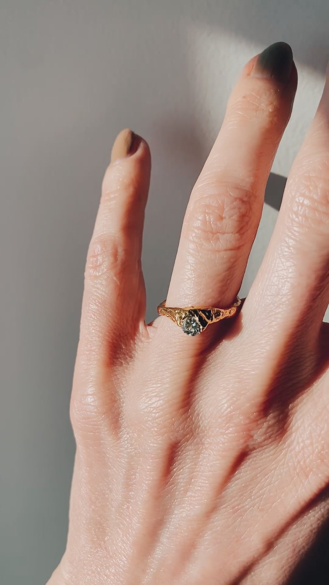Handmade and unique engagement ring in 18 karat solid white, yellow or champagne gold.