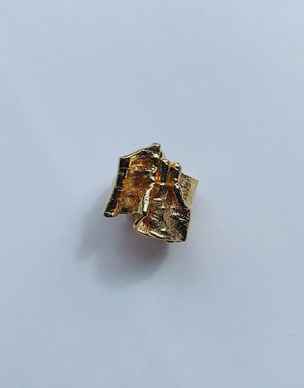 The Rachelle ring is adaptable in size and handmade in sterling silver. The weight is approximately 14 grams and it's available with or without high quality 5 micron 18 karat gold vermeil. The height of the ring goes from 2 cm in the front to 1 cm in the back and you can choose between adaptable sizes. If you prefer a closed ring band, please mention this and leave your exact size in the request box.