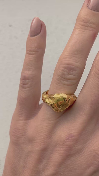 The Rock ring is heavy statement ring, handmade in sterling silver with high quality 5 micron 18 karat gold vermeil.